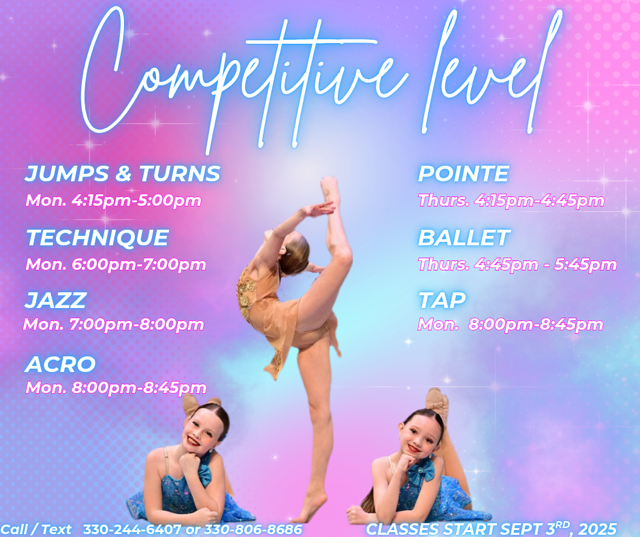 - We have something for every phase of your dancer’s journey. From Mommy & Me, preschool, recreational, competitive and up to pre- professional, we are qualified to take your child through every level.